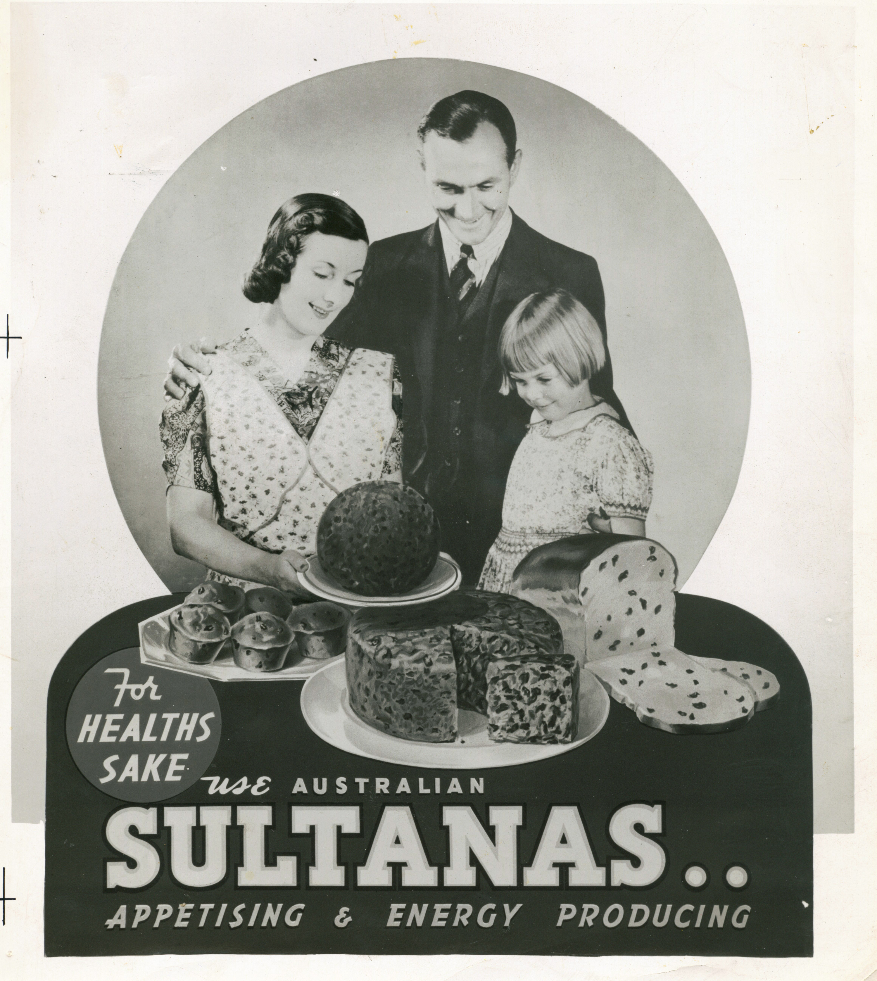 Those mini cardboard boxes of Sunraysia raisins are a nostalgic image from many Australian childhoods. The fact that Sunraysia raisins cemented themselves into our childhood memories is no accident. It has its roots in a colourful and audacious campaign undertaken by C.J. De Garis in 1919. As the newly appointed Director of Publicity at the Australian Dried Fruits Association (as the DFA was then known) his task was to boost domestic sales, due to a shortage of export shipping space. Beginning with a public competition for a new slogan, De Garis chose ‘sun-raysed’ which was soon incorporated into everything from cartoons to beautifully illustrated fairy story books.