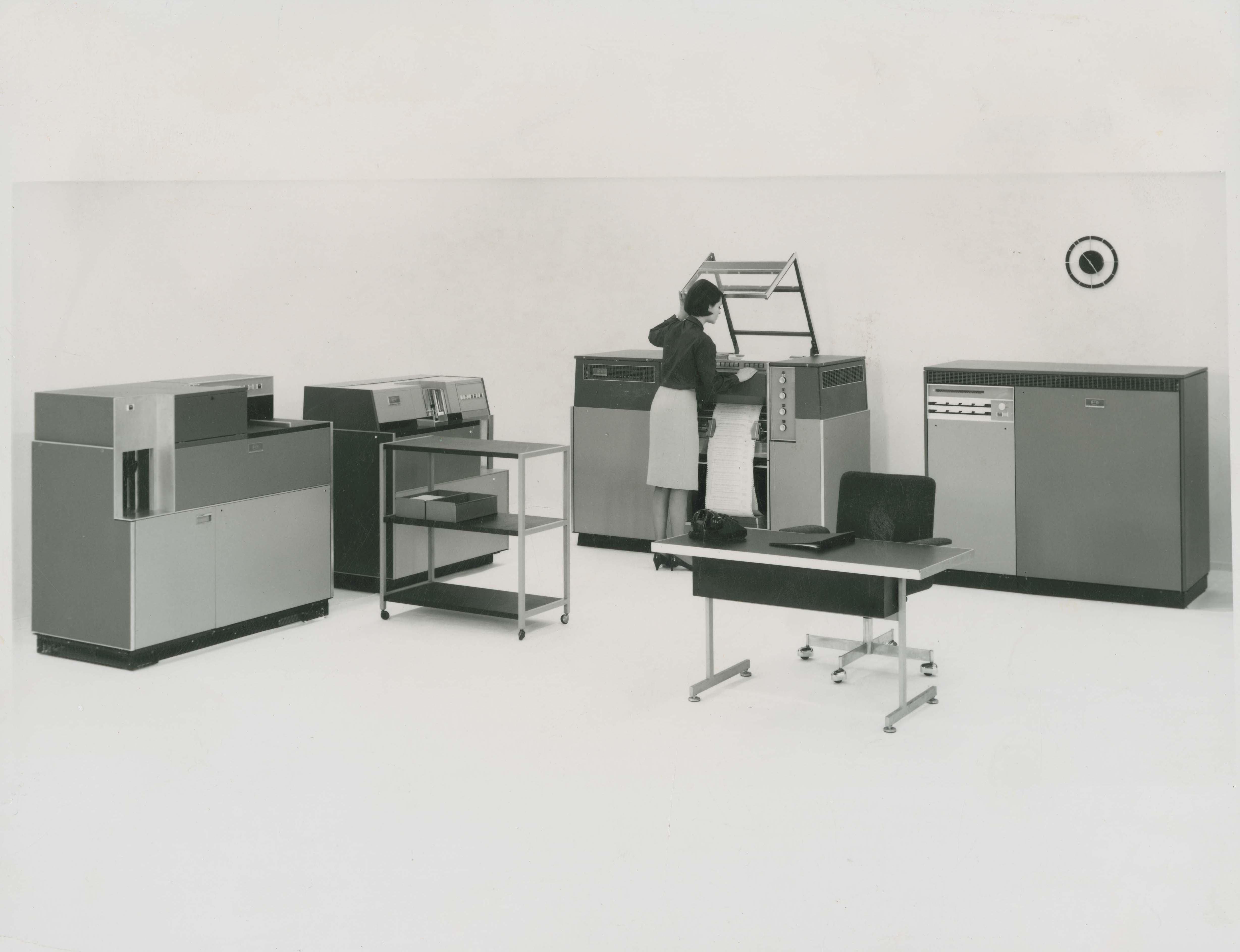 The image below shows a PMA employee making adjustments to the building’s ICL 2900 Series mainframe, developed in the UK by ICL 1974 to 1980. The 2900 was ICL’s most successful line, running on the Virtual Machine Environment operating system. But once the likes of IBM started making easy to use personal computers, ICL saw a decline in sales and were eventually taken over by Fujitsu.