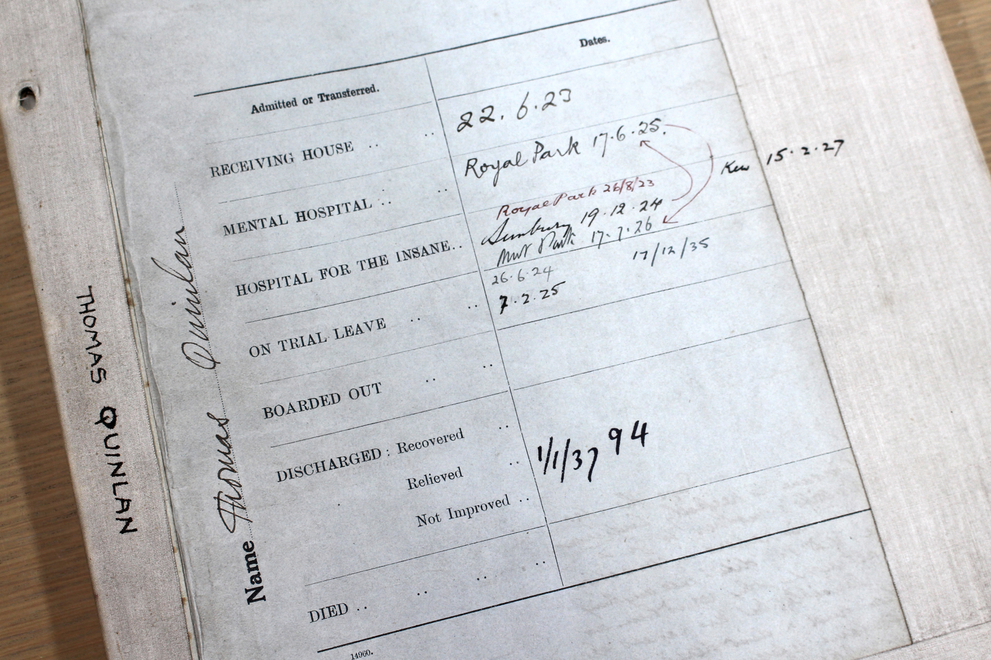 Quinlan’s file is part of a unit titled “(1937) Ma - Wr; (1938) Ab - Lu; Ma - Zi; (1939) Ac – Ja, Patient Clinical Notes” PROV, VPRS 7693/P1, Unit 18. This box contains the patient histories of a number of asylum residents during the 1920s and 1930s and provides fascinating insights into both the individuals and the mental health system in Australia during this time.