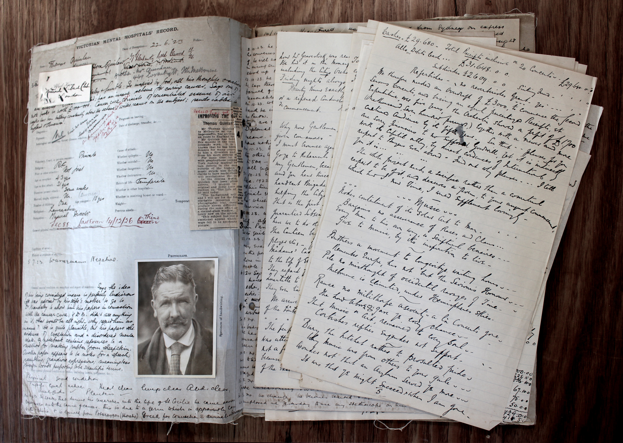 The company toured the world, staging hugely successful orchestral and choral shows until their 1922 Australian tour by the Sistine Chapel Choir turned out to be a financial failure. What happened to Quinlan after this disastrous last tour? The only information Wikipedia has on Quinlan after this date is that he was divorced from his wife Dora in 1926 and then died in 1951. To discover more, you need to dig a little deeper, as the answer lies in a place you wouldn’t expect - the hand written clinical notes from Melbourne’s Kew Asylum.