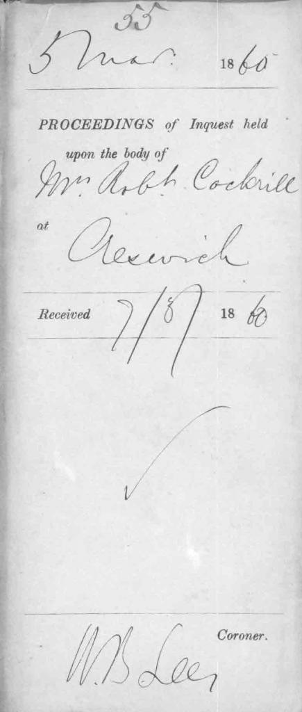 [30] PROV, VPRS 24/P0, Unit 90, File 1860/55 female, inquest into the death of Mrs Robert Cockrill.