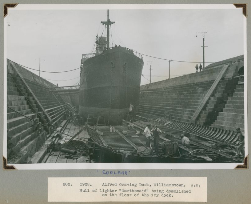 Figure 2: Alfred Graving Dock, Williamstown, in 1938. The bluestone-lined dock was partially built by Glaister & Co. PROV, VPRS 8362/P0001/58, 603.
