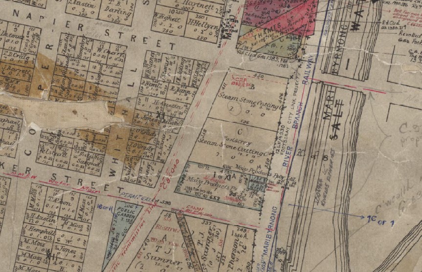 [56] ‘Melbourne’, Geelong Advertiser, 24 July 1867, p. 3; PROV, VPRS 70/P0001, Unit 12, 1867 Volume P, p. 263, Item 5376, 7 May 1867, the register summary is ‘Thomas Glaister & Co apply under the 50th clause of Land Act for a lease of 1ac of land at the junction of Napier street with Saltwater River at Footscray’; PROV, VPRS 70/P0001, Unit 12, 1867 Volume O, p. 542, Item 10256, 20 August 1867 ‘Woolcott & Turner, per Glaister & Co. refer to Glaister’s application for lease of land at Footscray for sawing bluestone etc and request that marble, granite & freestone be included’.