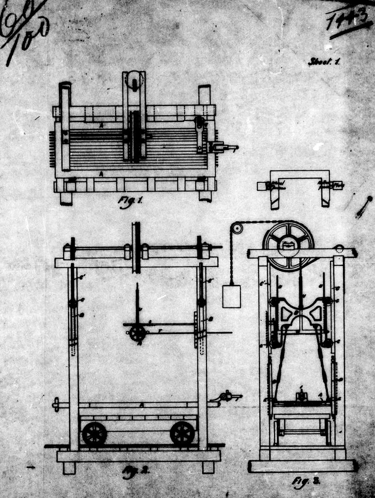 Figure 4: Part of Glaister’s second stone sawing patent from 1870. State Library Victoria, Victorian Patent Number 1443 of 1870 – Thomas Glaister (Contractor) Footscray, Victoria.